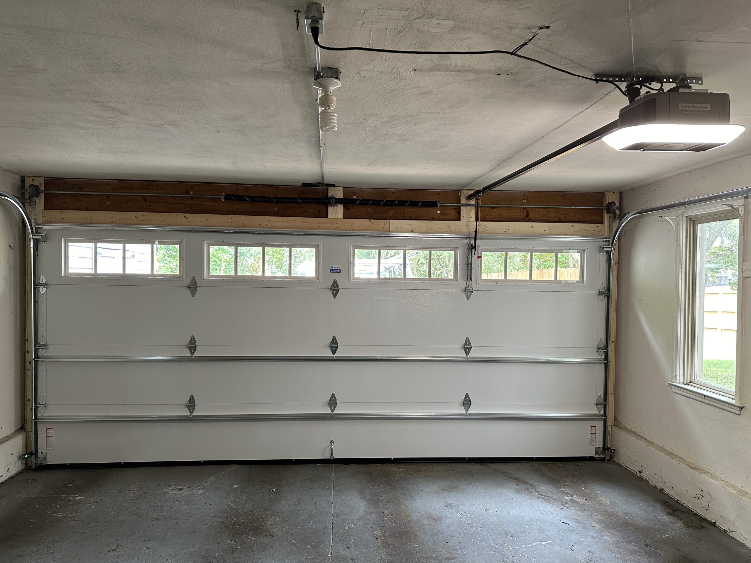 CHI Steel Back Door Reframed with Liftmaster Opener